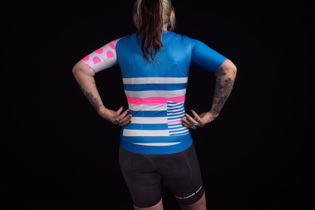 The HC jersey is our signature design. It has been with us on our journey since 2015. Our ‘asymmetry in a symmetrical sport‘ approach helped invigorate a fresh aesthetic into cycling apparel. Our ‘asymmetrical arm’ dot pattern celebrates the ability to succeed in life’s uphill challenges.